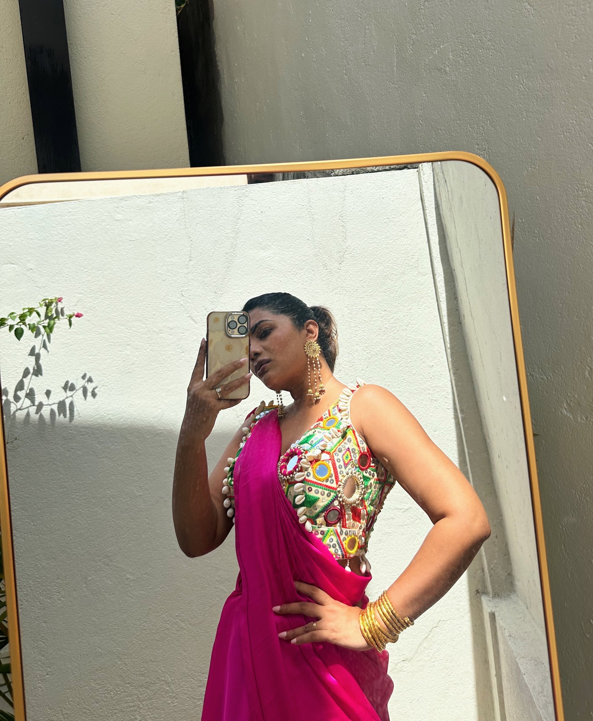 Absolutely stunning fully hand made and created traditional design mirror work blouse.