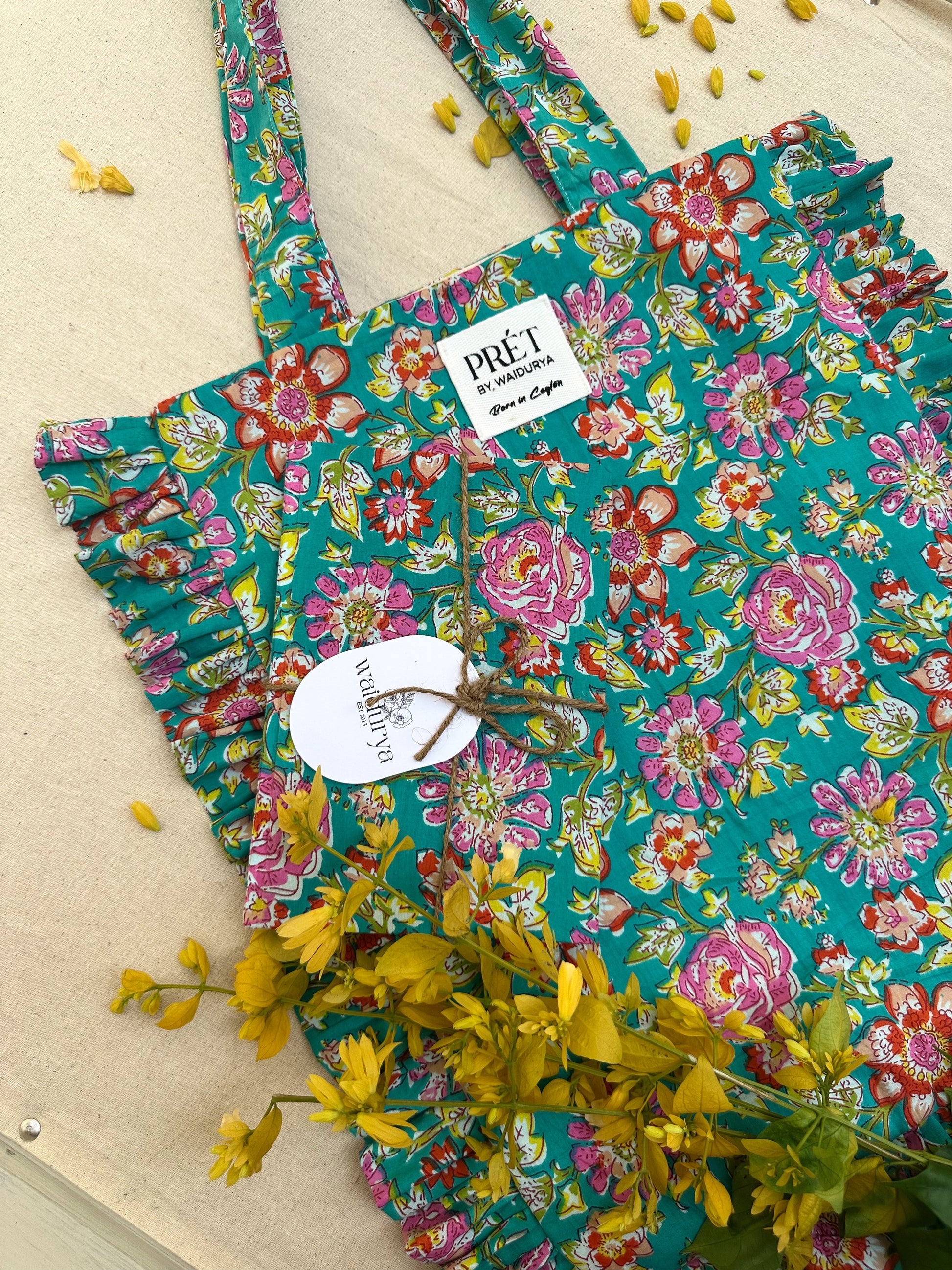 100% handmade and produced in house by our wonderful team. These totes are made of pure cotton printed fabrics with pure cotton and linen lining. They are beautifully and individually made with love. Only one in each design.