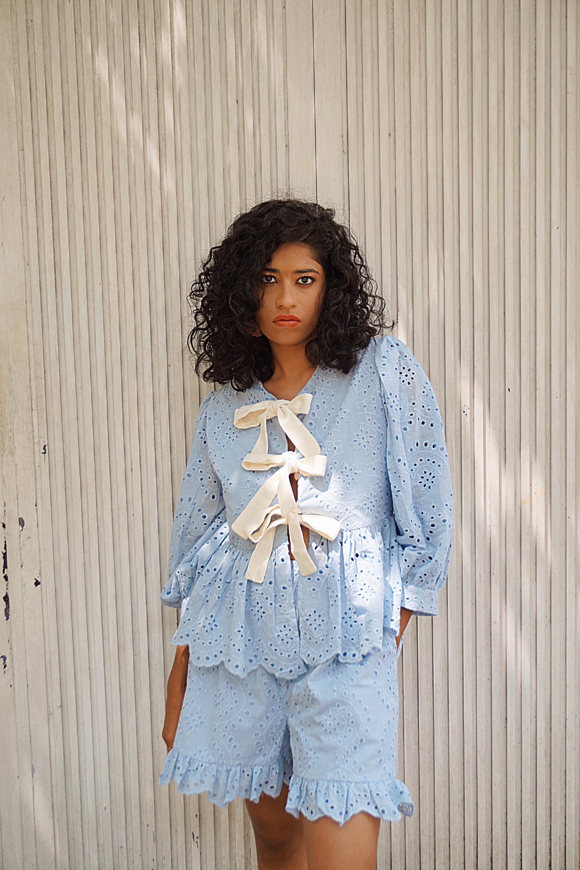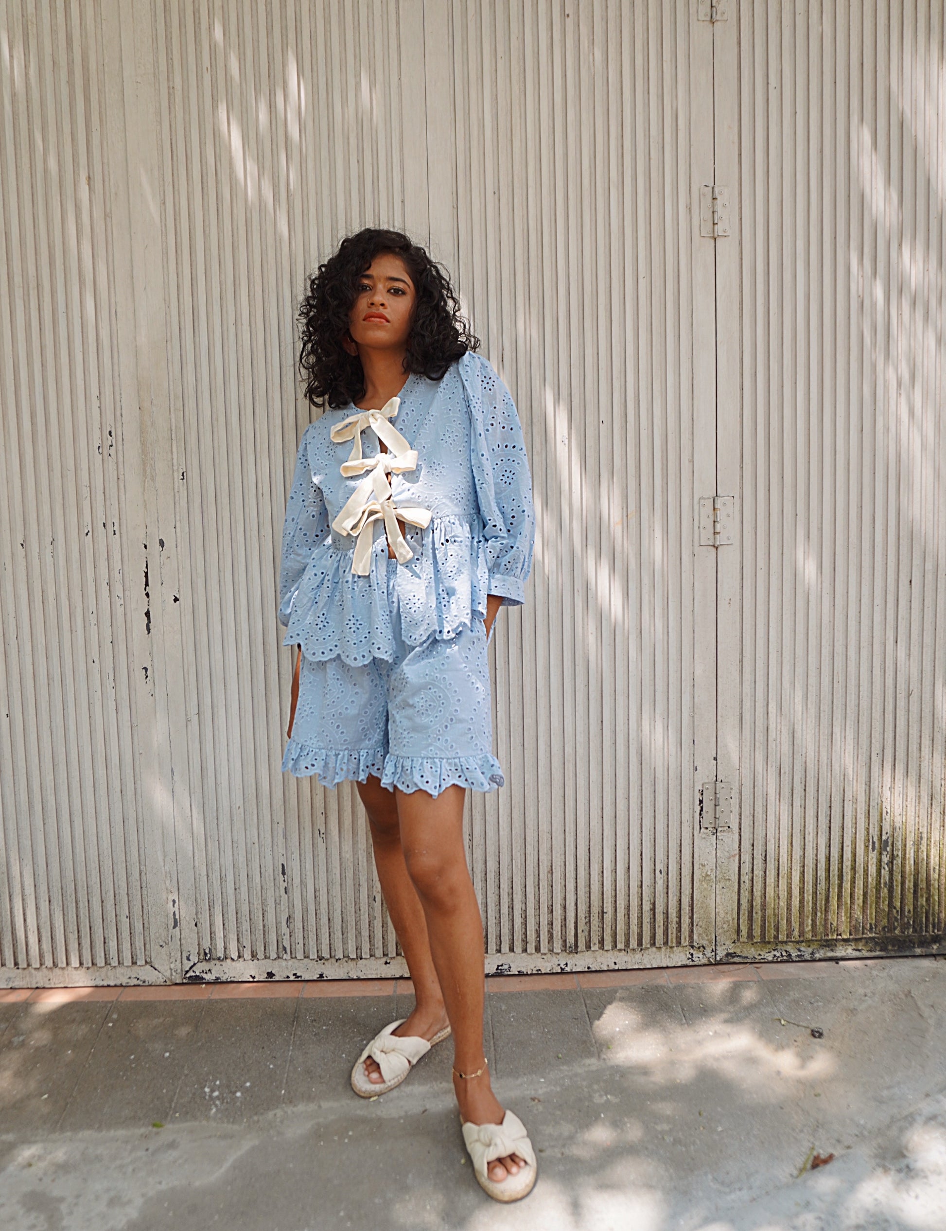 The tailoring on this set is impeccable with a beautifully crafted puff sleeves and a peplum design.