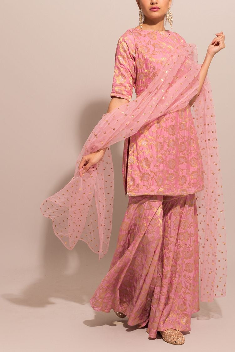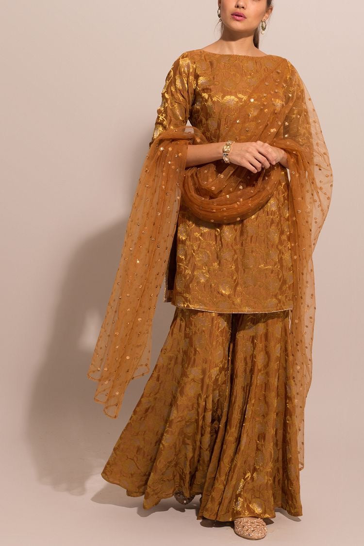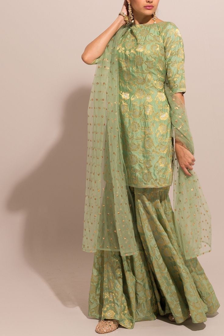 Dupatta is a cluster sequin embroidered soft net dyed to matching color.