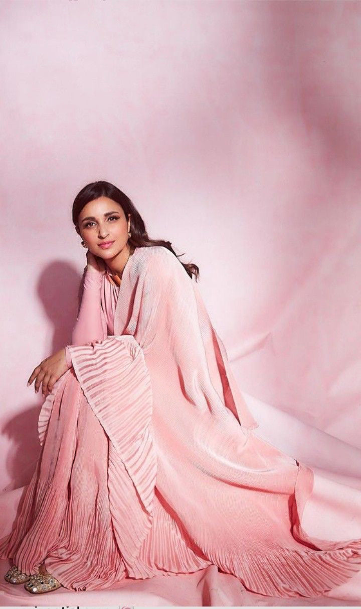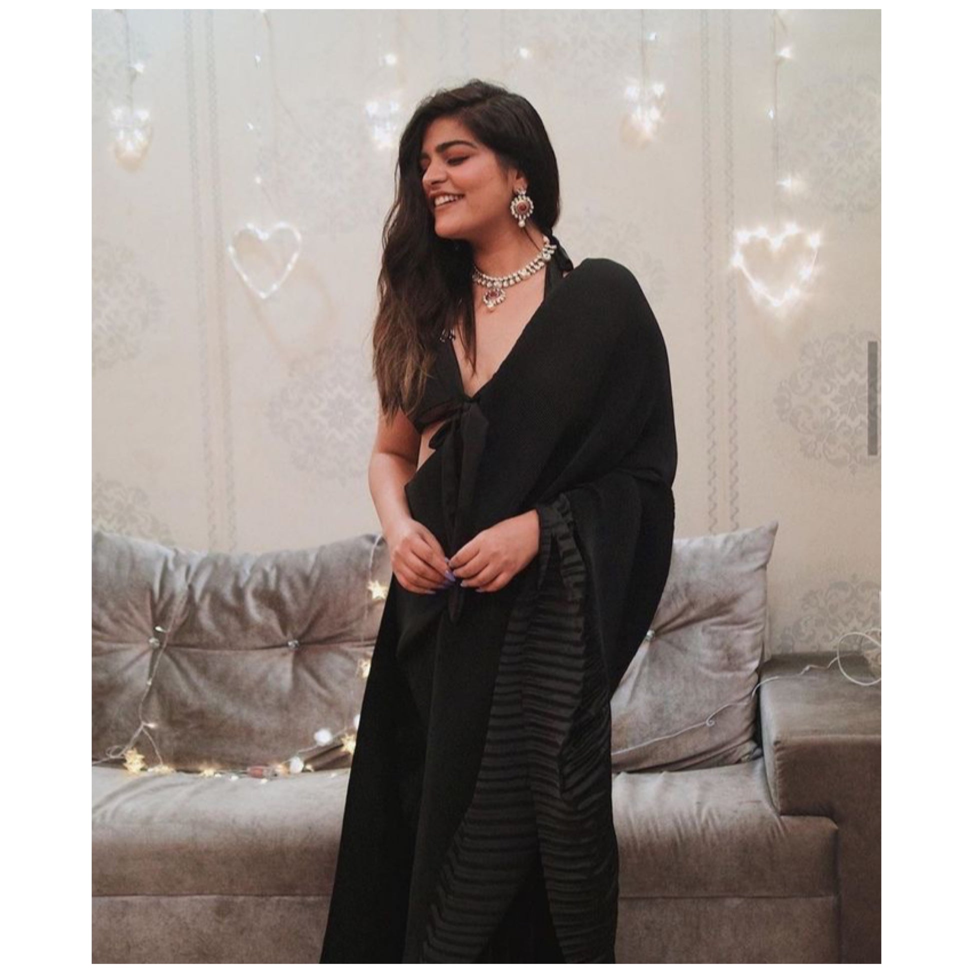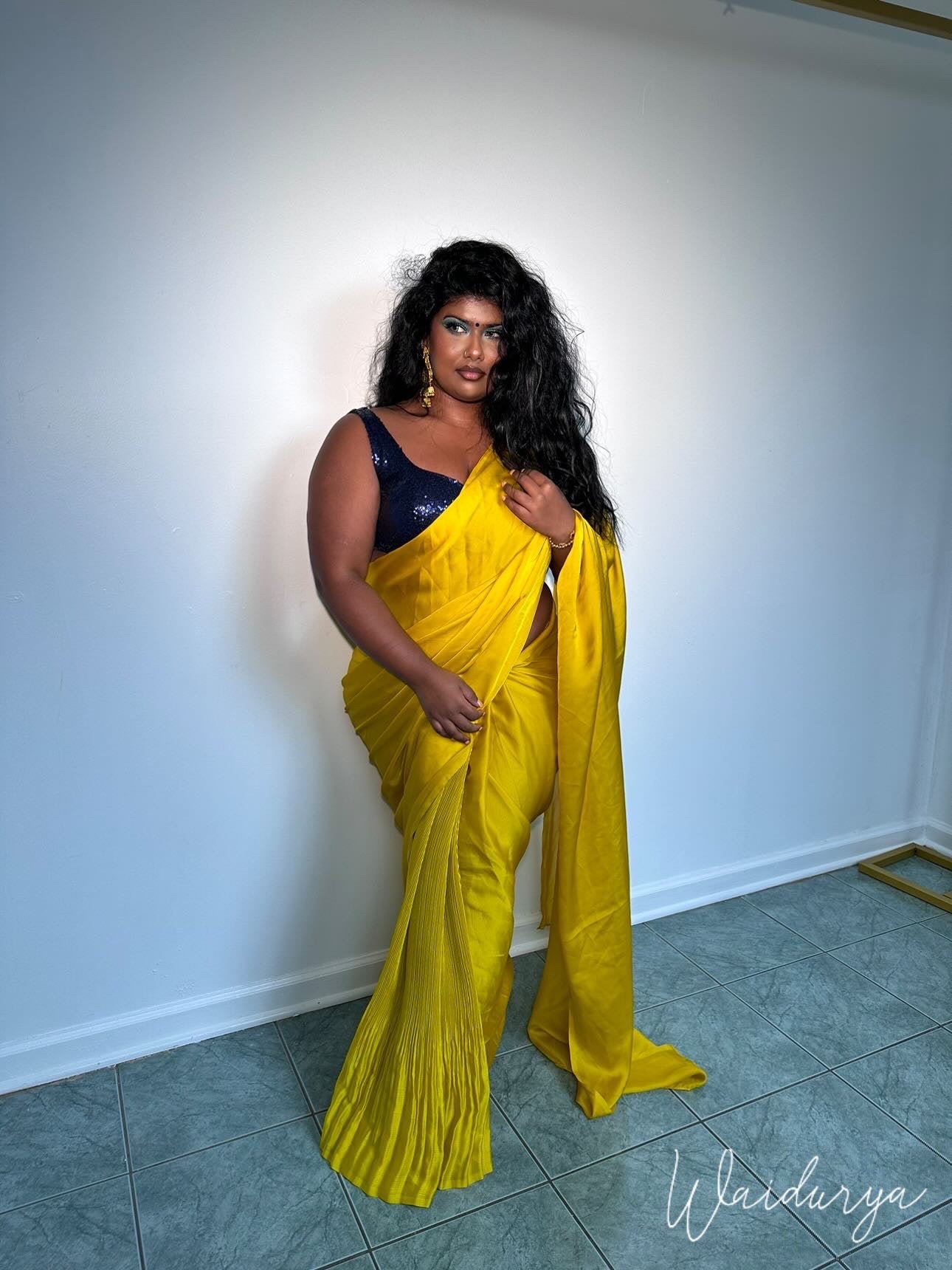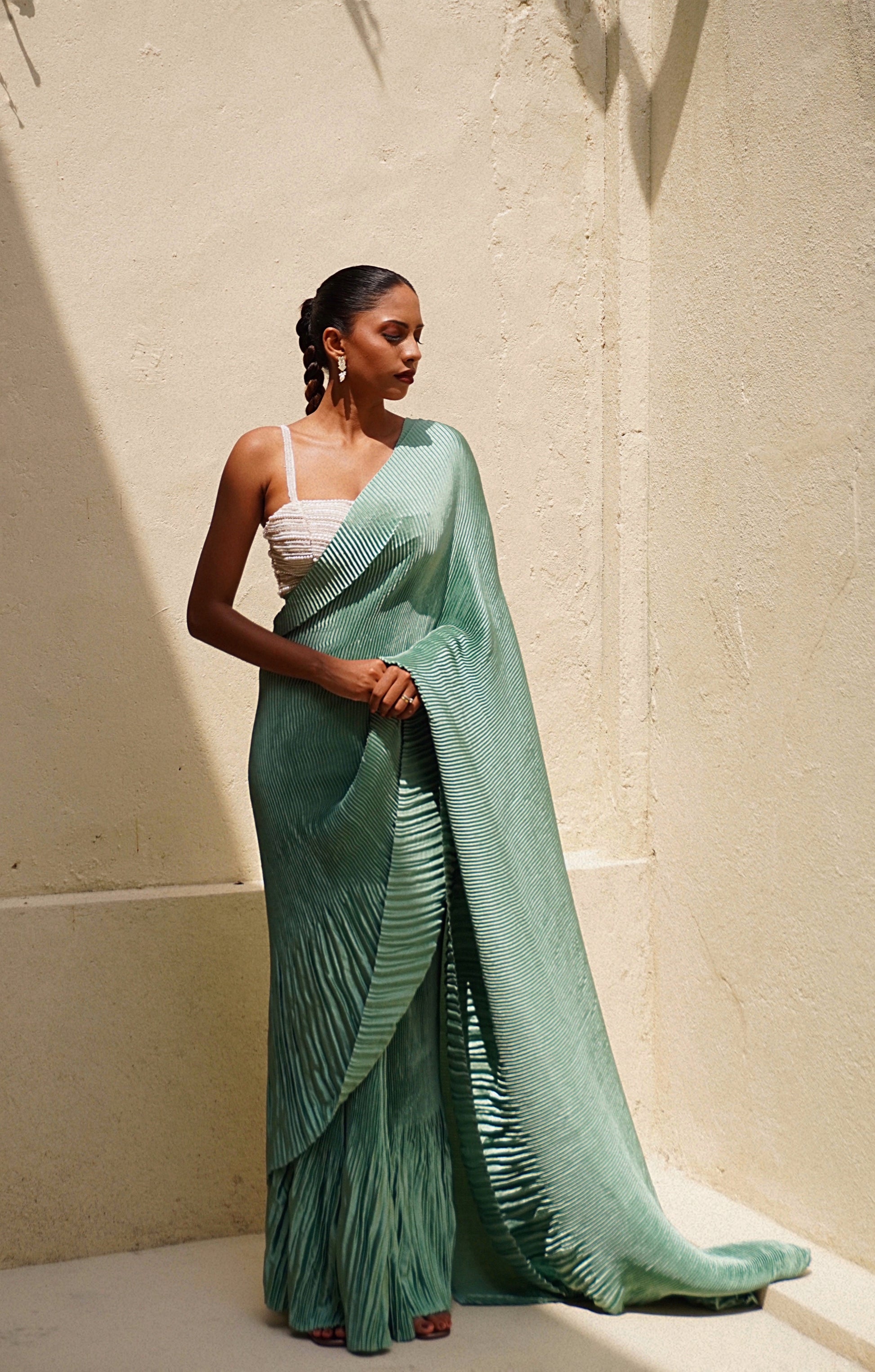 Gorgeous self pleated (crimped) sari in satin georgette.
