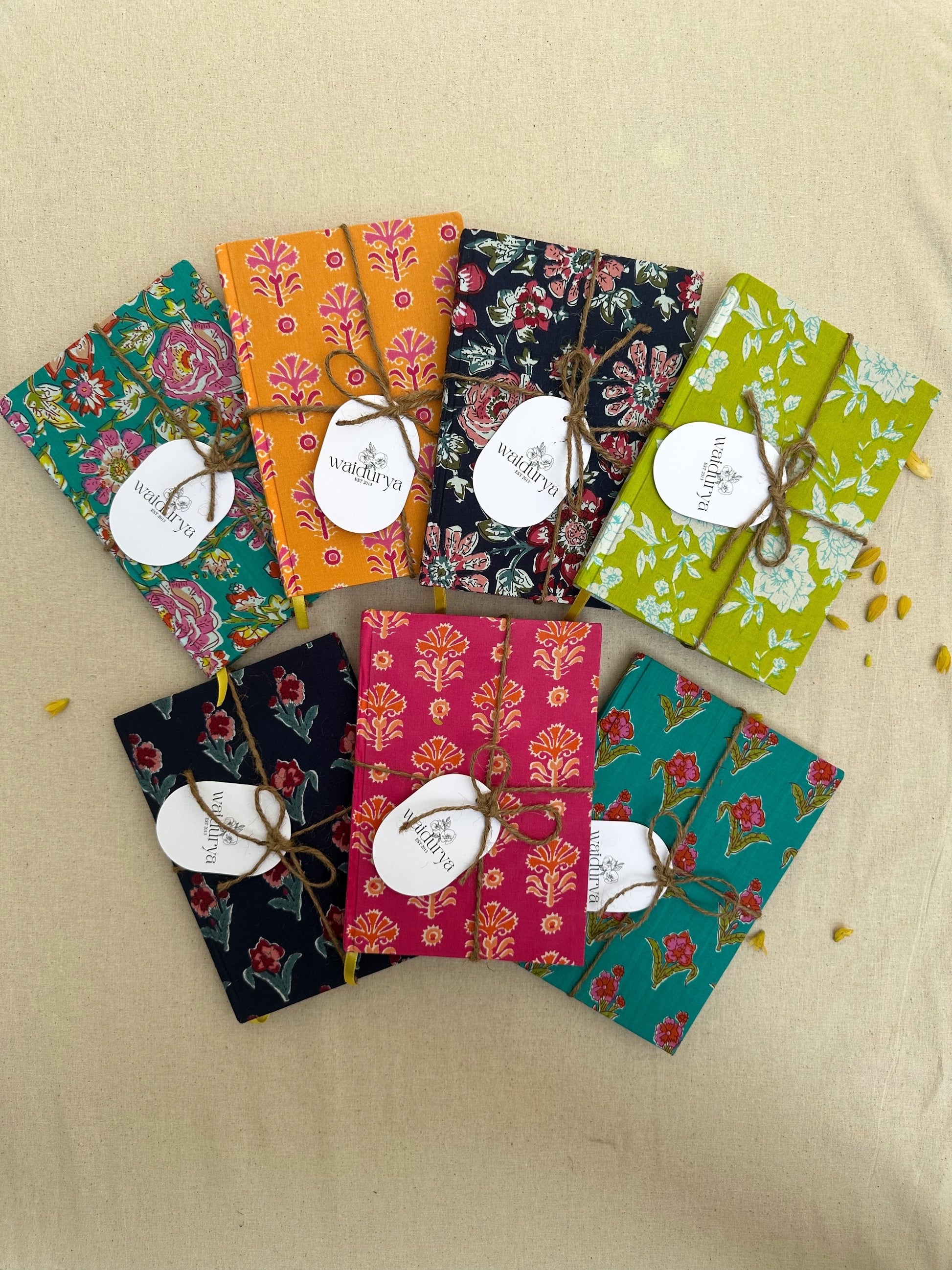 These are 100% handmade journals made in Sri Lanka using 100% cotton printed fabric.