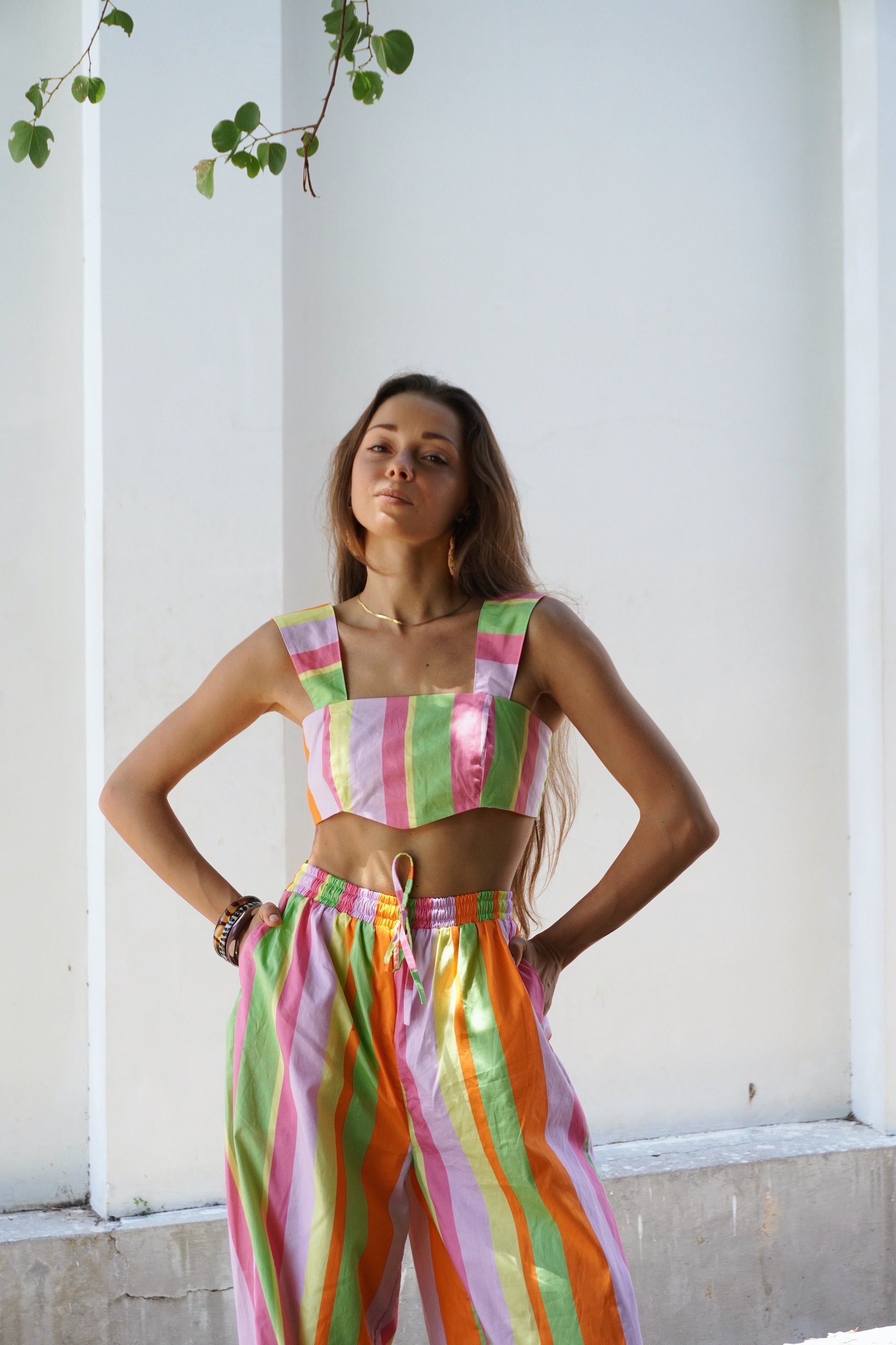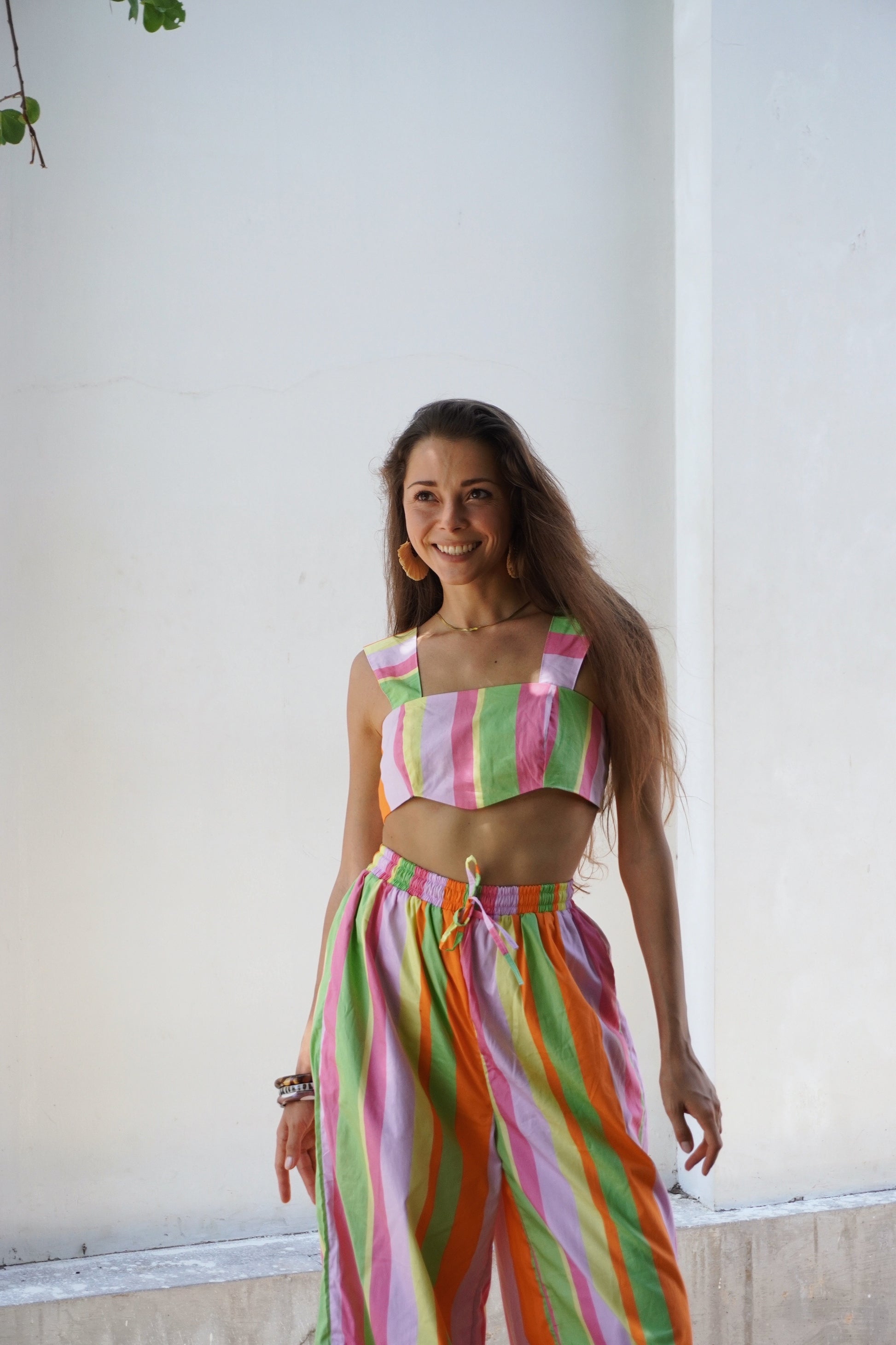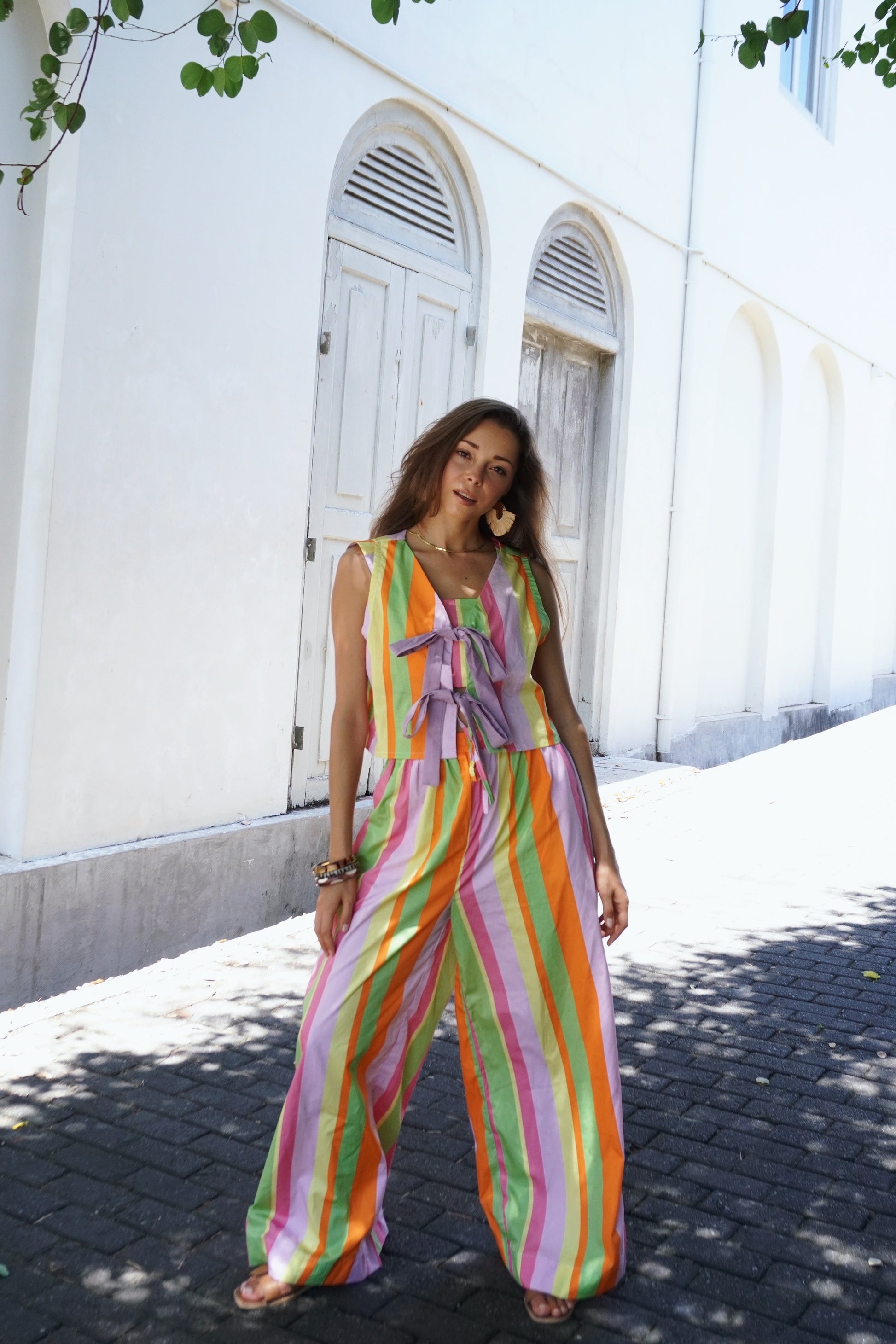 ISLA shirt is cotton, breathable, vibrant and oh so fun! Tailored beautifully to be a “live in” set. Comfortable to wear through the day on holidays or just lounging around. We love the interesting pairing of a matching lilac linen tie up front detail.