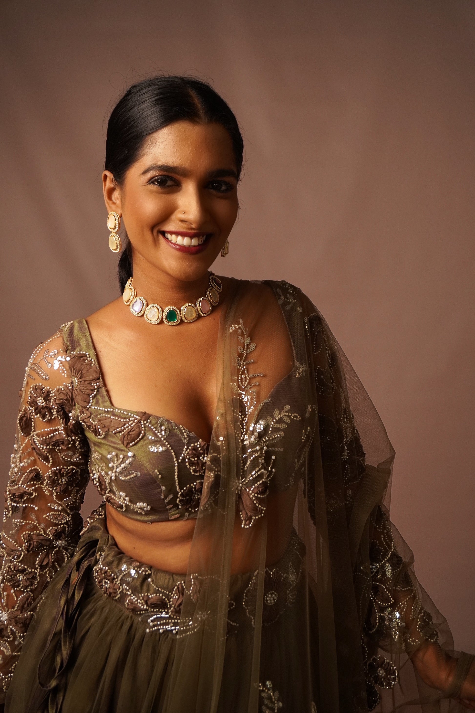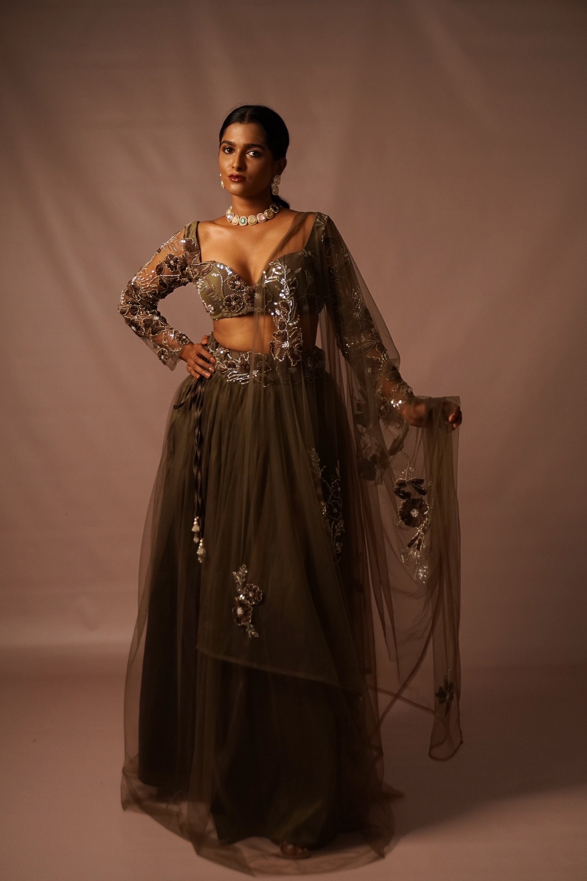Jashn is the most beautiful rich deep olive shade hand embellished and luxury personified.