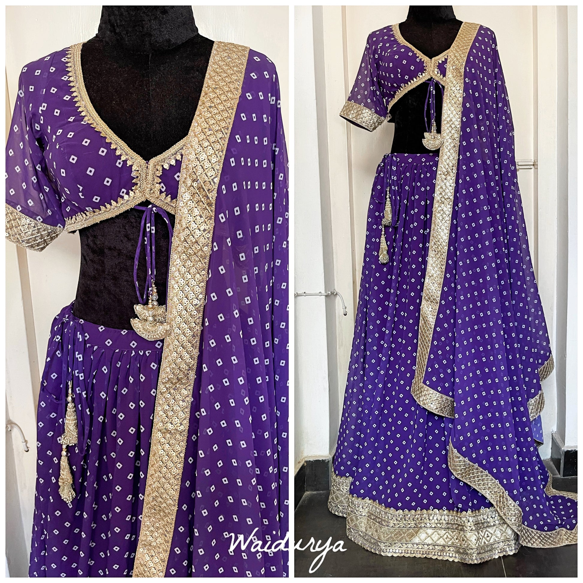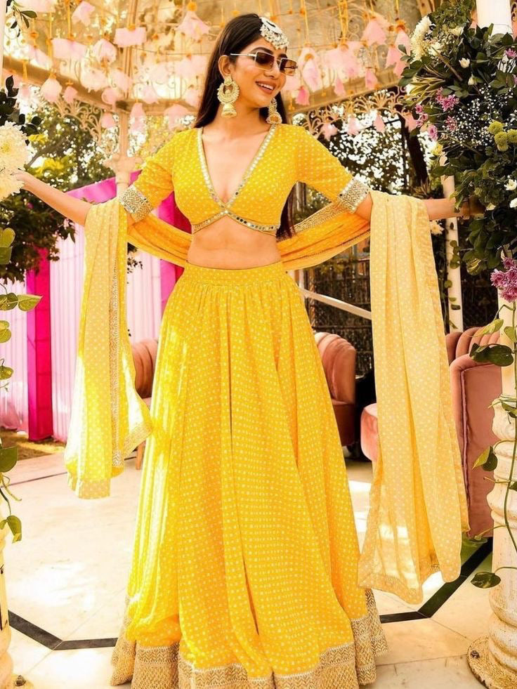 BANDANI printed georgette lehenga or sari with a customizable border.